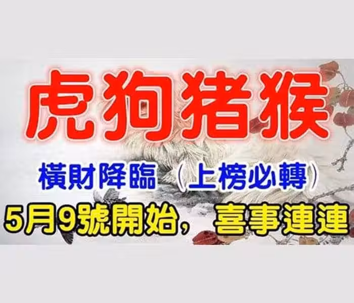 5月9號開始橫財降臨,喜事連連的生肖