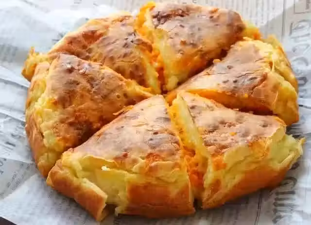做法:紅薯去皮切薄片,隔水上鍋熟,加少量的煉乳壓碎。另起大碗打一個雞蛋➕180克牛奶➕15克白糖➕15克玉米油拌勻,篩180克糯米粉拌勻,6寸模具鋪上油紙,先倒一半糯米糊,撒芝士碎;紅薯泥加進去鋪平整,再撒一層芝士碎;剩餘的糯米糊加進去,放入預熱烤箱,上下火185度烤大約30分鐘。