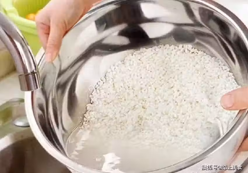 我們需要將大米放入清水中浸泡一段時間,讓米中的雜質和多餘的澱粉溶解在水中,然後再用流動的水沖洗乾淨。