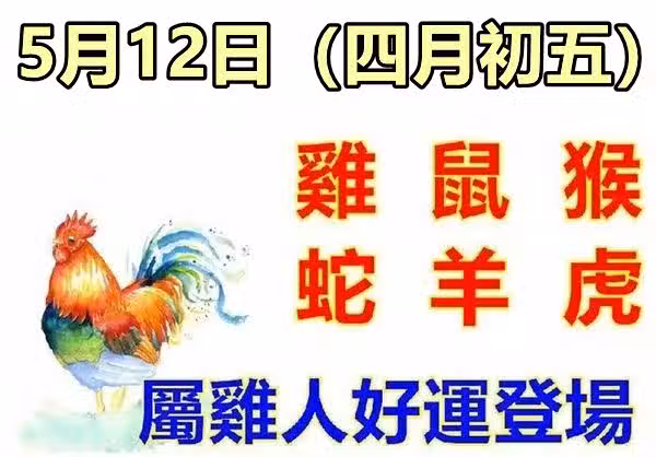 5月12日生肖運勢_雞、鼠、猴大吉