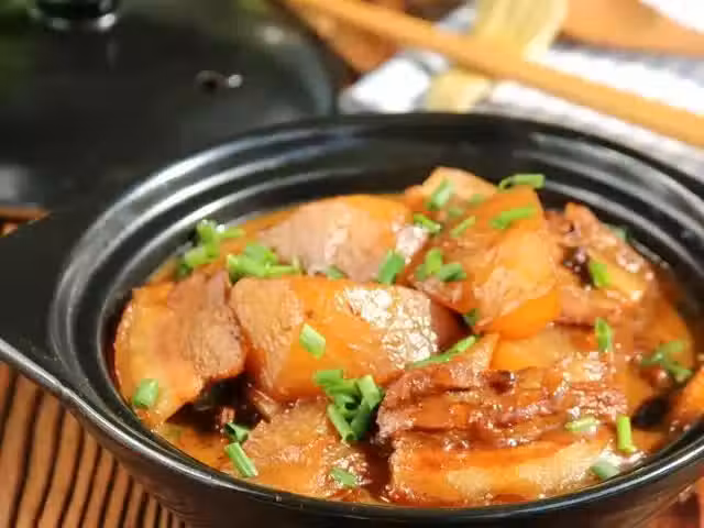 肉和白蘿蔔搭配,白蘿蔔吸收了油脂剛好中和了油膩,而且口感也會變得更加的鮮嫩。需要的食材;五花肉250克白蘿蔔500克甜麵醬1湯匙生薑片少許料酒2湯匙生抽2湯匙老抽1湯匙豆豉5克