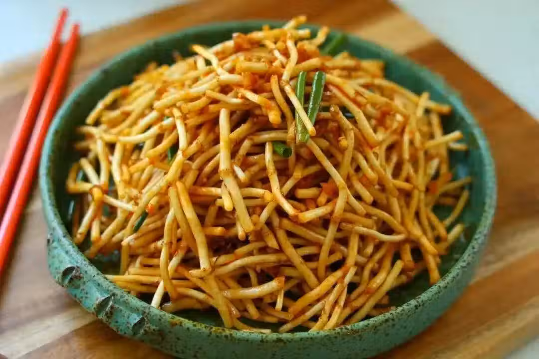 涼拌折耳根的特色在於其獨特的口感和香氣。折耳根本身帶有一種特殊的清香味,將清洗乾淨的折耳根切成小段,放入涼開水中浸泡,再加入適量的鹽,這樣既能保持折耳根的清脆口感,又能讓其在鹽的作用下更好地釋放出香味。