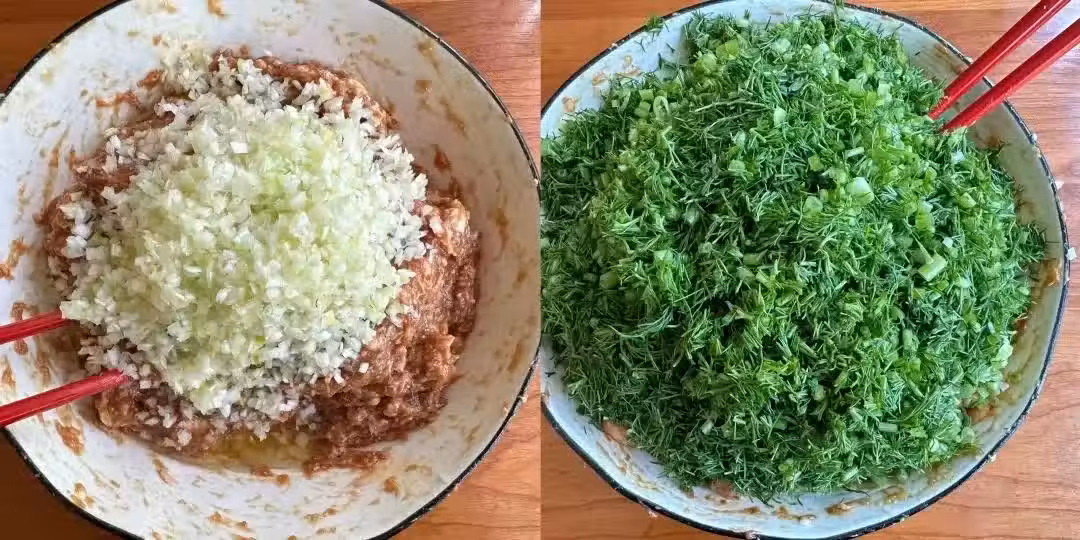 3、茴香肉餡兒就調好了。用來包包子餃子太好吃了!