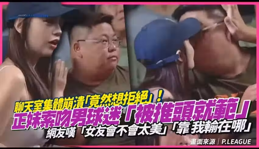 網友大崩潰「靠 我輸在哪」!正妹索吻男球迷猛搖頭「被強壓才就範」 網友嘆「太狠了!竟然還想拒絕」