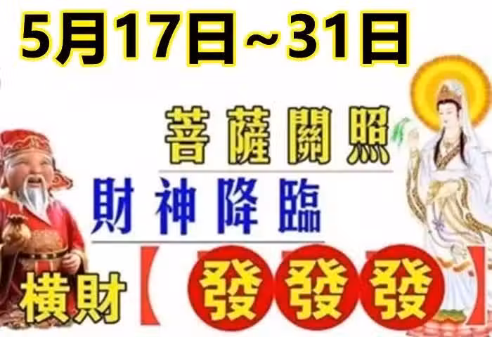 5月17日~31日菩薩關照,財神降臨,橫財發發發的生肖