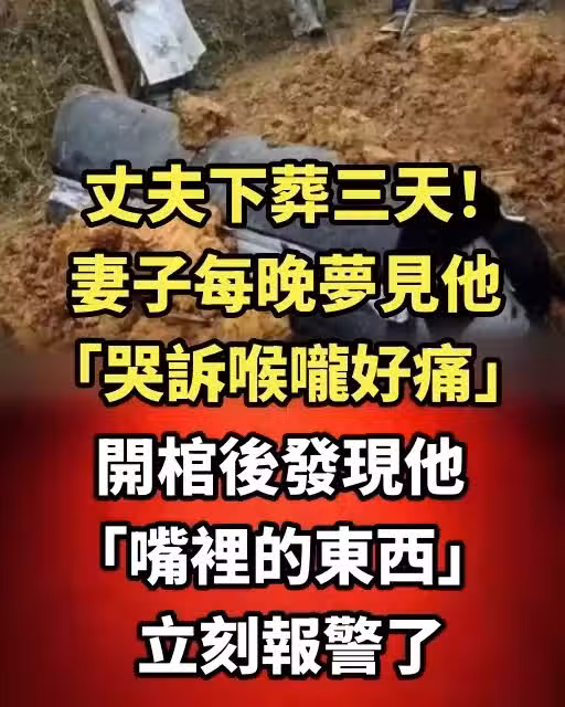 丈夫下葬三天!妻子每晚夢見他「哭訴喉嚨好痛」開棺後發現他「嘴裡的東西」立刻報警了~