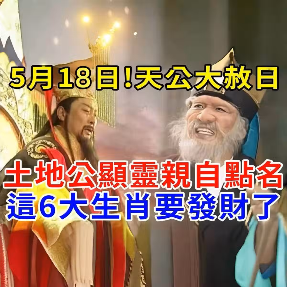 5月18日!天公大赦日!玉皇大帝和土地公顯靈親自點名!這6大生肖要發財了!鴻運加持不可擋,未來3代人不愁!