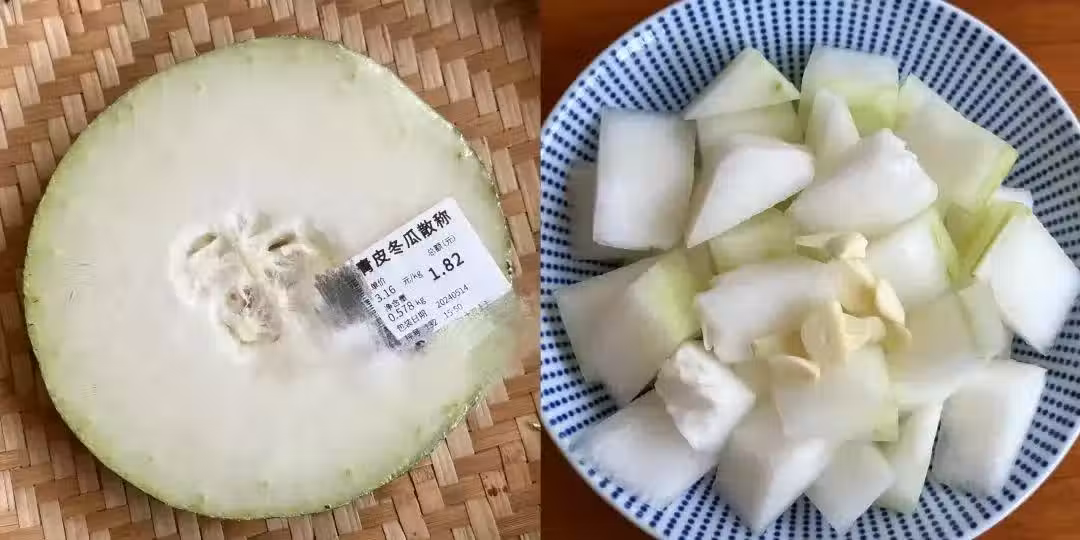 2、熱鍋涼油,加入蔥白和蒜片炒香,下冬瓜塊翻炒均勻。