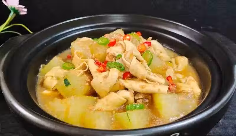 再簡單的菜肴也有烹飪小技巧:今天用的青冬瓜瓜皮比較厚,建議全部削去。如果是切片的建議也要切的稍微厚一些,防止燜煮久了就碎掉了,不要怕不入味。菜譜中用到了午餐肉,今天只是將其作為一個調料來使用,對其不感興趣的朋友建議用鮮肉末代替即可。用到的千張結也可以用素雞、油豆腐、腐竹結等食材代替,滋味都很好。夏天正是吃冬瓜的好時機,補水解暑祛濕又下火,和很多食材都是百搭,比如搭配今天的千張結就是一個大美味。