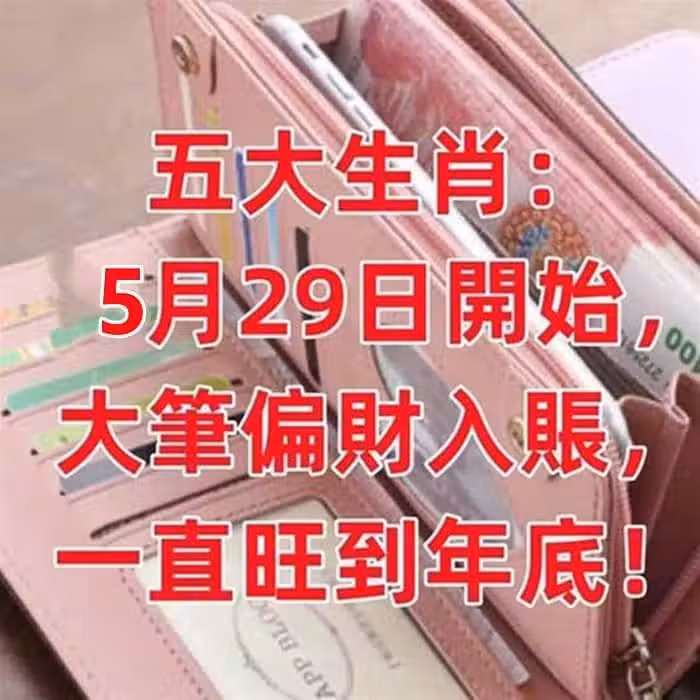 5月29日開始大筆偏財入賬,一直旺到年底的生肖!