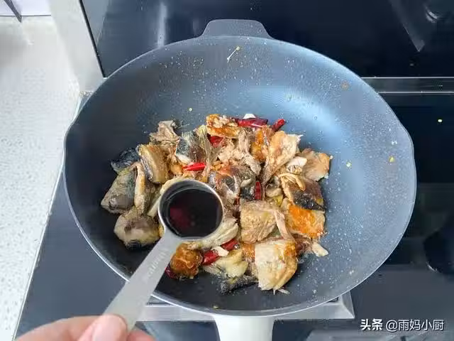 10、加入少許食鹽,調味拌勻,把魚塊炒至香酥後,就可以關火了。
