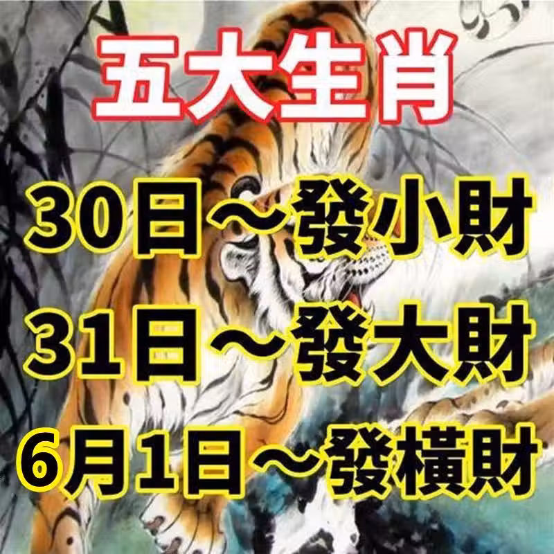 五大生肖:5月30日發小財,31日發大財,6月1日發橫財
