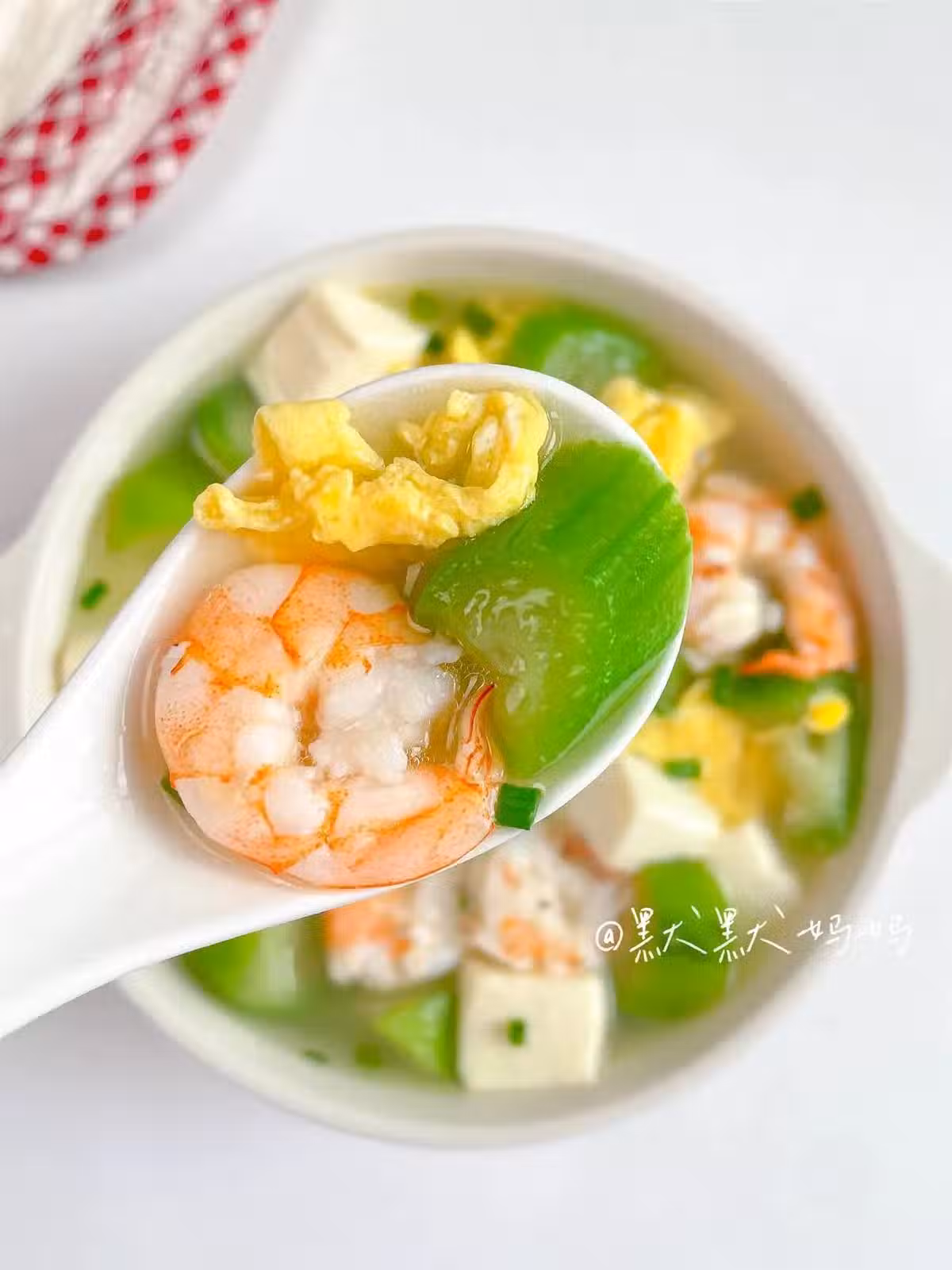而且絲瓜的做法非常多,蒸、煮、炒都可以,不管是哪種做法都非常好吃,尤其夏天要多喝湯水,所以搭配高蛋白的蝦仁和植物蛋白豐富的豆腐一起,營養又美味,常喝對脾胃好。