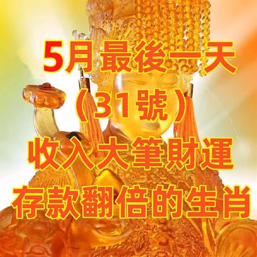 5月最後一天(31號)收入大筆財運,存款翻倍的生肖!