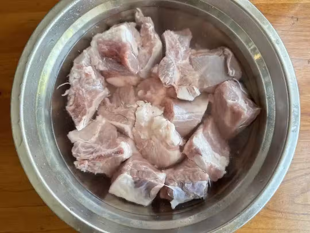 2、再來調味:排骨里加入白鬍椒粉+姜粉少量 澱粉1勺 老抽1勺 鹽1勺 生抽2勺 蚝油1勺。