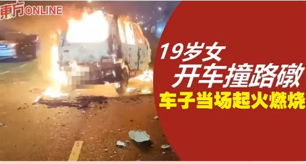 (古晉4日訊)19歲女子開車撞擊路中央分界洋灰路礅後,車當場冒煙起火燃燒,負傷司機座女司機幸被路過民眾及時救出車外,否則後果不堪設想。