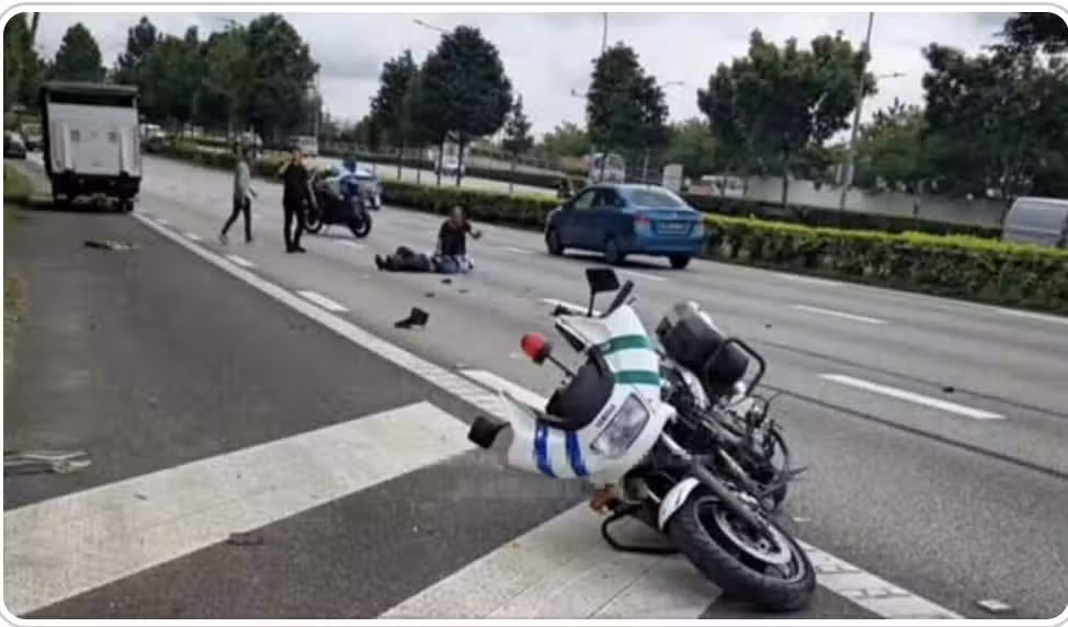 他被強大的撞擊力拋飛至半空後摔落,而事後的現場照片中,也能看到執法人員躺在距離摩哆逾10公尺外的地方,四周散落大量碎片,旁邊則有數名公眾停下協助。