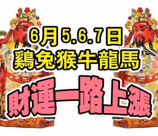 6月5.6.7日(雞兔猴牛龍馬)財運將一路上漲