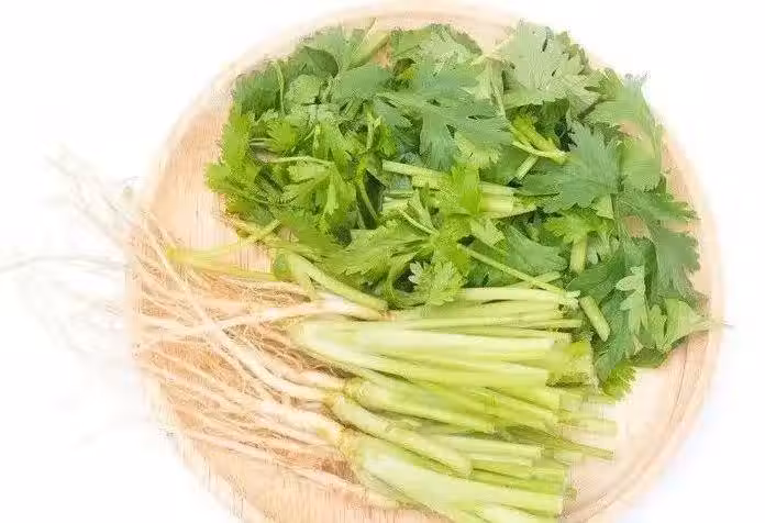 挑選完後,我們把香菜根到葉四到五厘米的根切下來,不要因為我們平時吃香菜都是吃葉子部分,就把根扔掉。我們可以把切下來的根自己種起來,讓它再次生長。