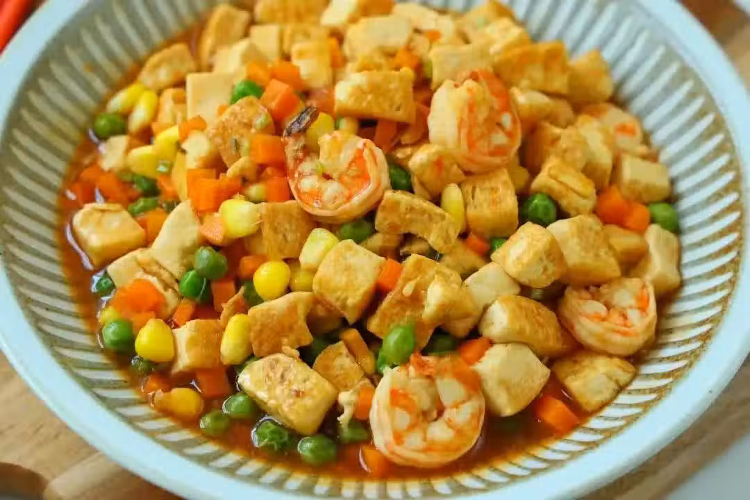 大火收汁後,這道菜更是色香味俱佳。金黃色的豆腐、鮮艷的雜蔬、鮮嫩的蝦仁,再加上濃郁的料汁,每一口都是對味蕾的極致挑逗。而它高鈣高蛋白質的營養價值,更是讓人吃得健康、吃得美味。