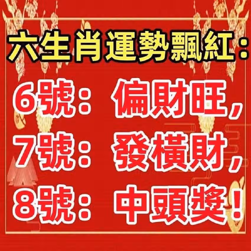 六大生肖運勢飄紅:6月6號偏財旺,7號發橫財,8號中頭獎!
