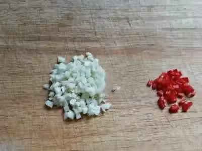 起鍋放油,油熱後小火將所有的蒜末倒入鍋中。油可以多放一點。這樣炒出來的算你會更香一點。直到蒜末都變成黃色,用一個抄子把所有的蒜末都撈出來。油倒在另一個碗中備用。