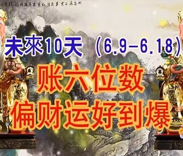 未來10天(6.9-6.18)賬六位數,偏財運好的生肖