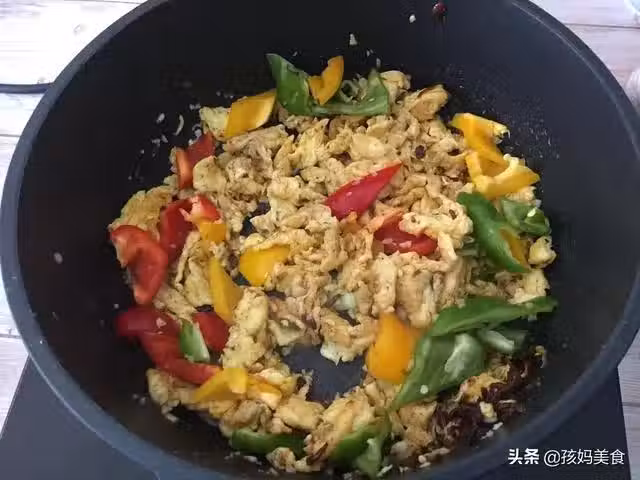 8、最後倒入彩椒塊和水澱粉炒勻即可出鍋