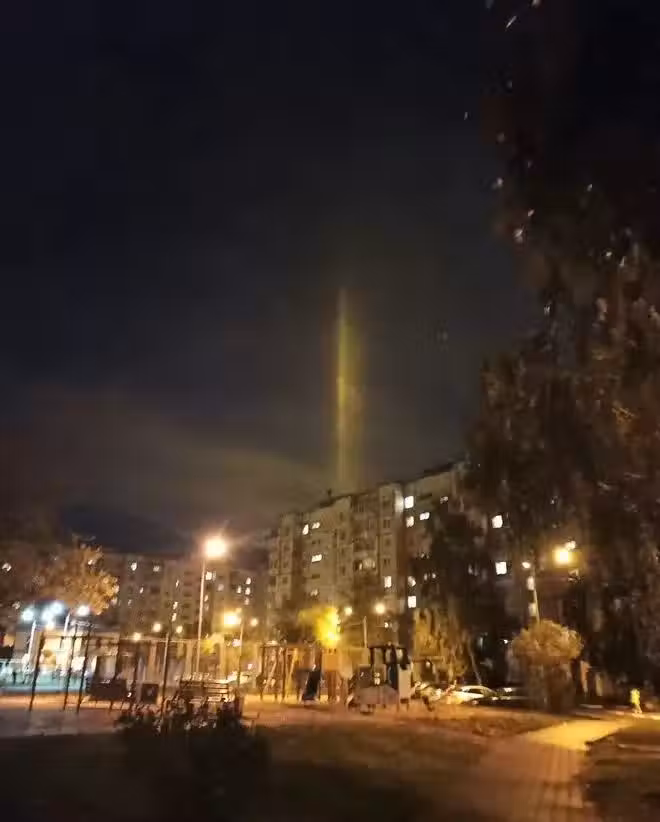 罕見!俄羅斯別爾哥羅德上空出現神秘光柱 網友:俄軍的金色裝備