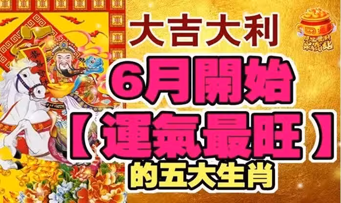 大吉大利,6月開始(運氣最旺)的五大生肖