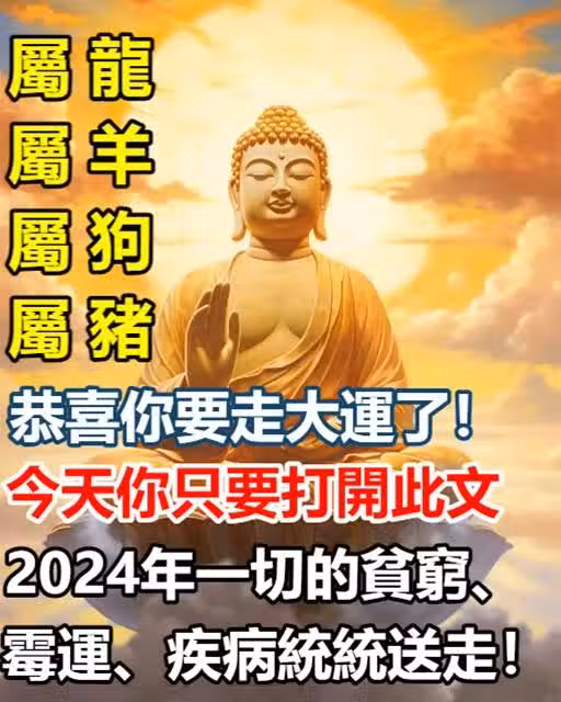 生肖【屬龍 屬羊 屬狗 屬豬】恭喜你要走好運了!今天你只要打開此文,2024年一切的貧窮、霉運、疾病統統送走哦!