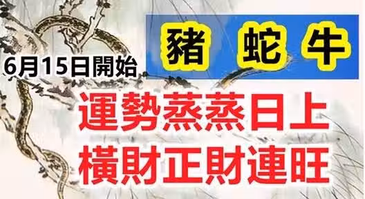 6月15日開始運勢蒸蒸日上,鴻運當頭,三生肖橫財正財連旺