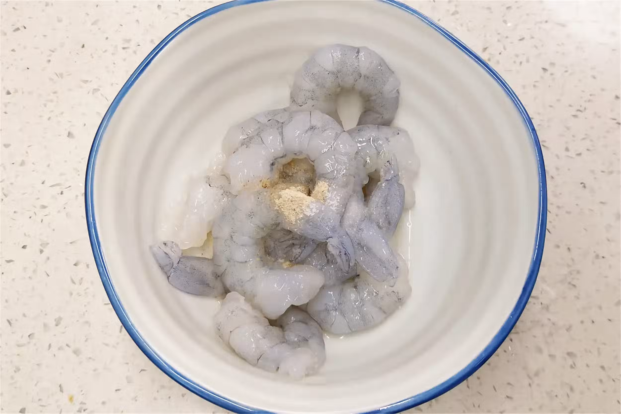 2、起鍋燒油,油溫熱後倒入腌好的蝦仁,小火慢煎蝦仁,蝦仁變紅後關火,蝦仁盛入盤中備用。