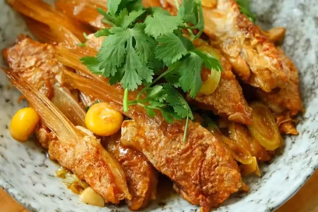 紅燒魚鰭的口感是其最大的魅力所在。經過慢燉,魚鰭的肉質變得軟糯,入口即化。紅燒的醬汁恰到好處地包裹在魚鰭的表面,那種口感,既有魚肉的鮮美,又有紅燒的濃郁,仿佛是水產美食與陸地美食的完美融合。