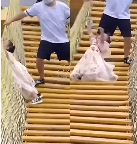 爸爸死命搖晃吊橋!女兒嚇哭手一鬆「縫隙掉下去」,結果悲劇了