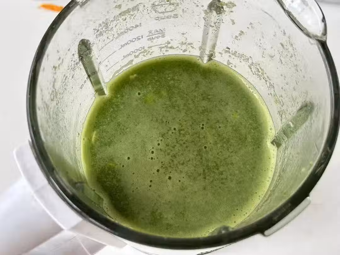 4、經過一段時間的攪打後,一杯清爽好喝的羽衣甘藍汁就做好了。不加糖的情況下,它微微帶有香蕉的甜味,口感十分清爽。您可以根據自己的喜好調整食材的比例和加入的量,以獲得更加個性化的口感。每天一杯羽衣甘藍汁,不僅能為您的身體帶來諸多好處,還能讓您享受到美味與健康的雙重愉悅。