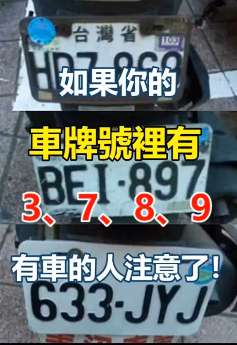 如果你的「車牌號裡有3、7、8、9」家裡有車的人注意了,現在知道還不晚!