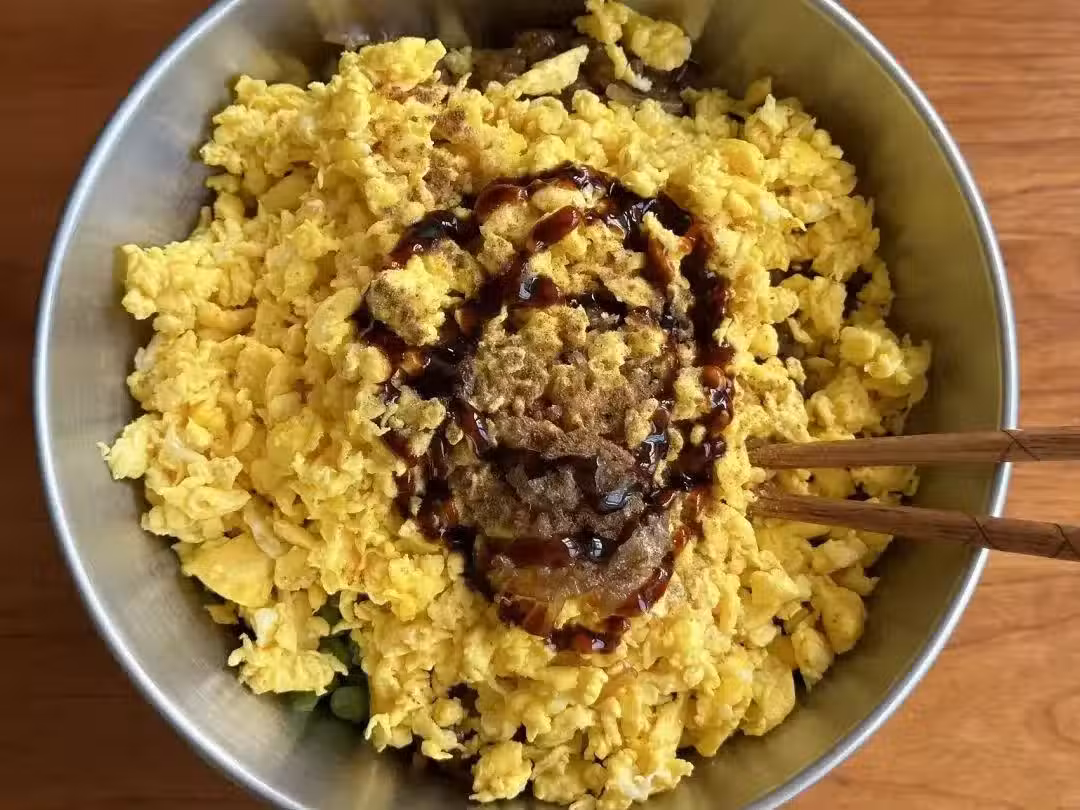 3、經過攪拌,餡料已經調製完成。此時,你可以聞到一股撲鼻而來的香氣,這是所有食材和調料完美融合的味道。