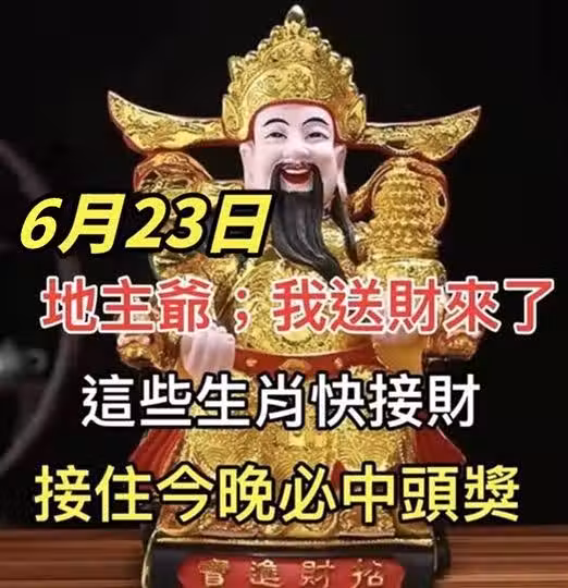 今天6月23日,地主爺說:我送橫財來了!這些生肖,今晚必中頭獎