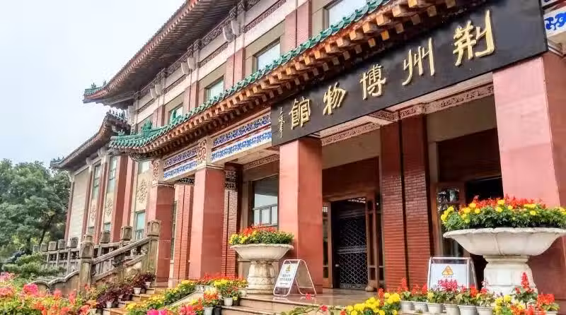 荊州是楚文化的中心,館藏以附近出土的舊石器和新石器時代的文物、東周時期文物和秦漢時期文物為主。也是漢民族長江文化的起源。在鄰近馬山出土的楚墓裡,挖出了為數可觀的陪葬品,可以窺見戰國時期的貴族生活。
