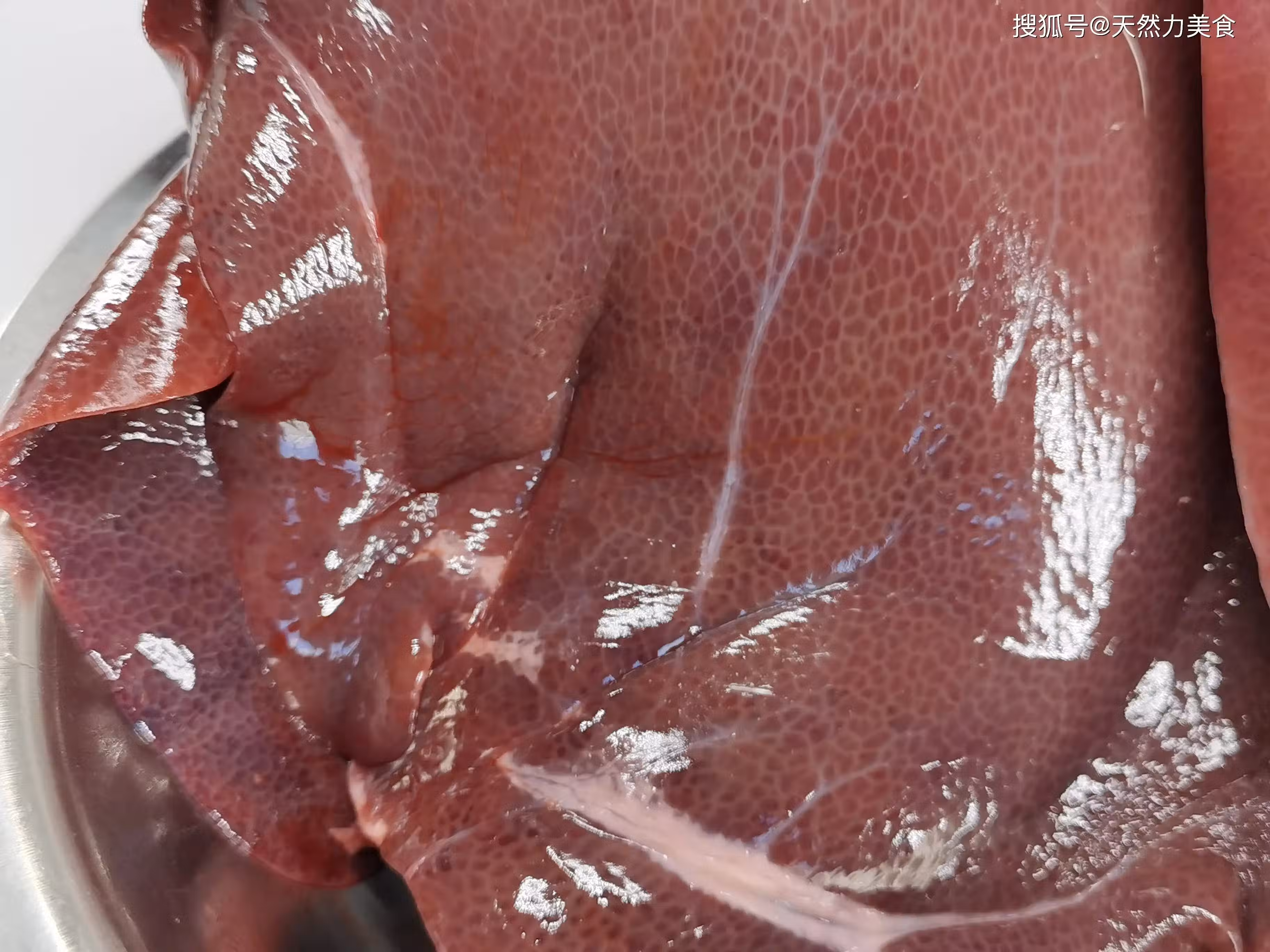 2、首先我們來看看這豬肝到底要如何才能清洗乾淨,如果買的豬肝是整塊的,那麼就用斜刀把豬肝一分為二,然後再切成0.2-0.3厘米厚的薄片,這個厚度大概和1元的硬幣的厚度差不多,這樣切出來的片,形狀如柳葉,所以我們稱之為柳片。我們儘量把豬肝切薄一些,這樣更有利於清洗乾淨,更容易入味和快速成熟。