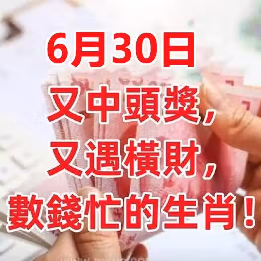 6月30日(6月最後一天)又中頭獎,又遇橫財,數錢忙的生肖!