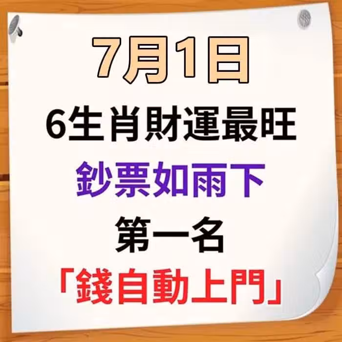 【7月1日】6生肖財運最旺 鈔票如雨下!第一名「錢自動上門」