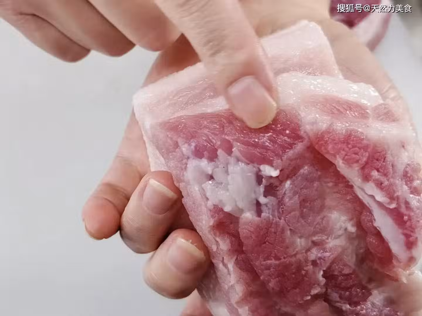 5、把子肉的長度一般在9-10厘米之間,我們先把五花肉切成大塊,然後再逆著瘦肉的紋理切成1厘米左右的厚片,不建議切太薄,因為燉煮的時間比較久,太薄了會不成型。