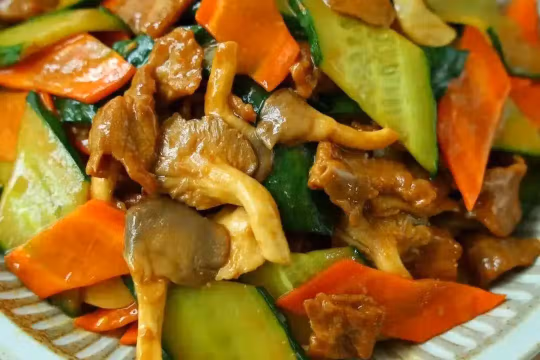 除了美味,這道菜的營養價值也不容忽視。黃瓜富含水分和維生素,具有清熱解暑、利尿消腫的功效;平菇則富含蛋白質和多種礦物質,有助於提高免疫力;瘦肉則提供了人體所需的優質蛋白質,有助於增強體質。這些食材的結合,不僅使得菜肴口感豐富,更讓營養得到了全面的補充。
