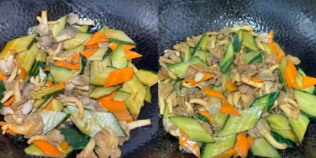6、超級下飯的一道菜,營養豐富,好吃不貴,黃瓜是應季蔬菜,入伏以後要多吃,清熱解暑,搭配平菇,真的味道絕了!胡蘿蔔不僅配色好看,也增加了蔬菜的種類,營養更加豐富好吃!瘦肉非常軟嫩,小孩子老人吃也沒有問題!營養豐富但不長肉,大魚大肉在它面前都黯然失色,真的特好吃,趕緊去試試!