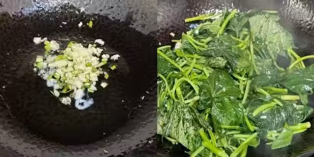 5、在炒制的過程中,只需加入適量的鹽進行調味即可。輕輕翻炒,讓每一片紅薯葉都充分吸收調料的味道。此時,你會發現紅薯葉的綠色變得更加鮮亮,散發出誘人的香氣。
