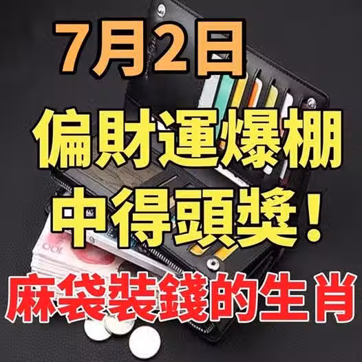 7月2日偏財運爆棚,中得頭獎!用麻袋裝錢的生肖!