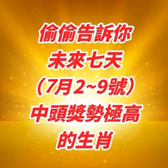 偷偷告訴你:未來七天(7月2~9號)中頭獎勢極高的生肖