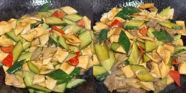 6、一盤色香味俱全的黃瓜片炒牛肉雞腿菇便完成了。它不僅僅是一道菜,更是對食材之美的極致追求與烹飪技藝的展現。每一口都是對味蕾的極致誘惑,黃瓜的清脆、雞腿菇的鮮美、牛肉的嫩滑,在口中交織,美味十足。即便是再豐盛的宴席,這道菜也能憑藉其獨特的魅力,成為餐桌上的焦點,讓人回味無窮。